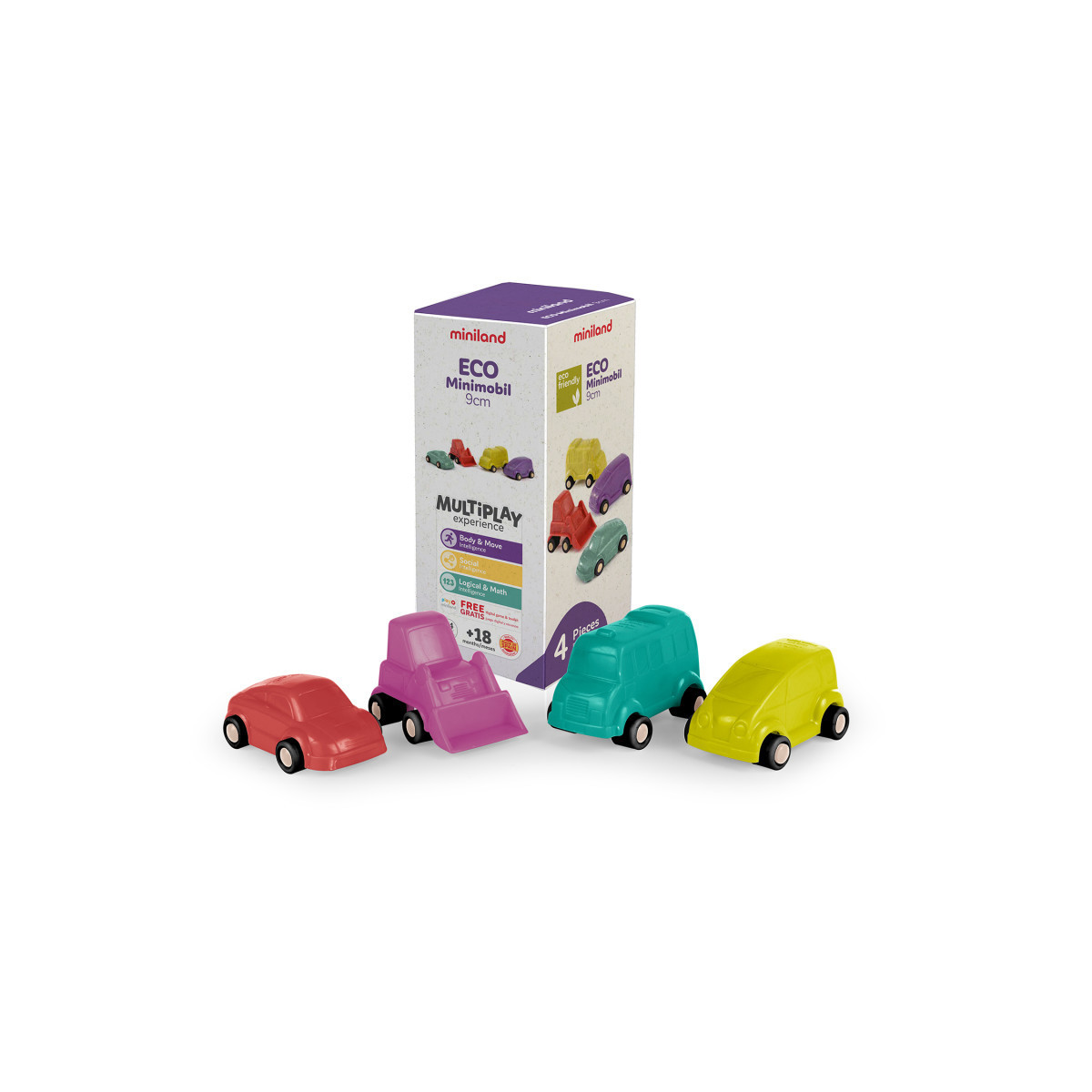 Miniland's classic Minimobils, now manufactured in eco-friendly materials to reduce their environmental impact. These fun didactic toys stimulate learning about the physical and social environment and can serve as support in the first steps towards Road Safety Education. A robust and durable design, with very safe non-removable wheels and high-strength axels. Set of 4.