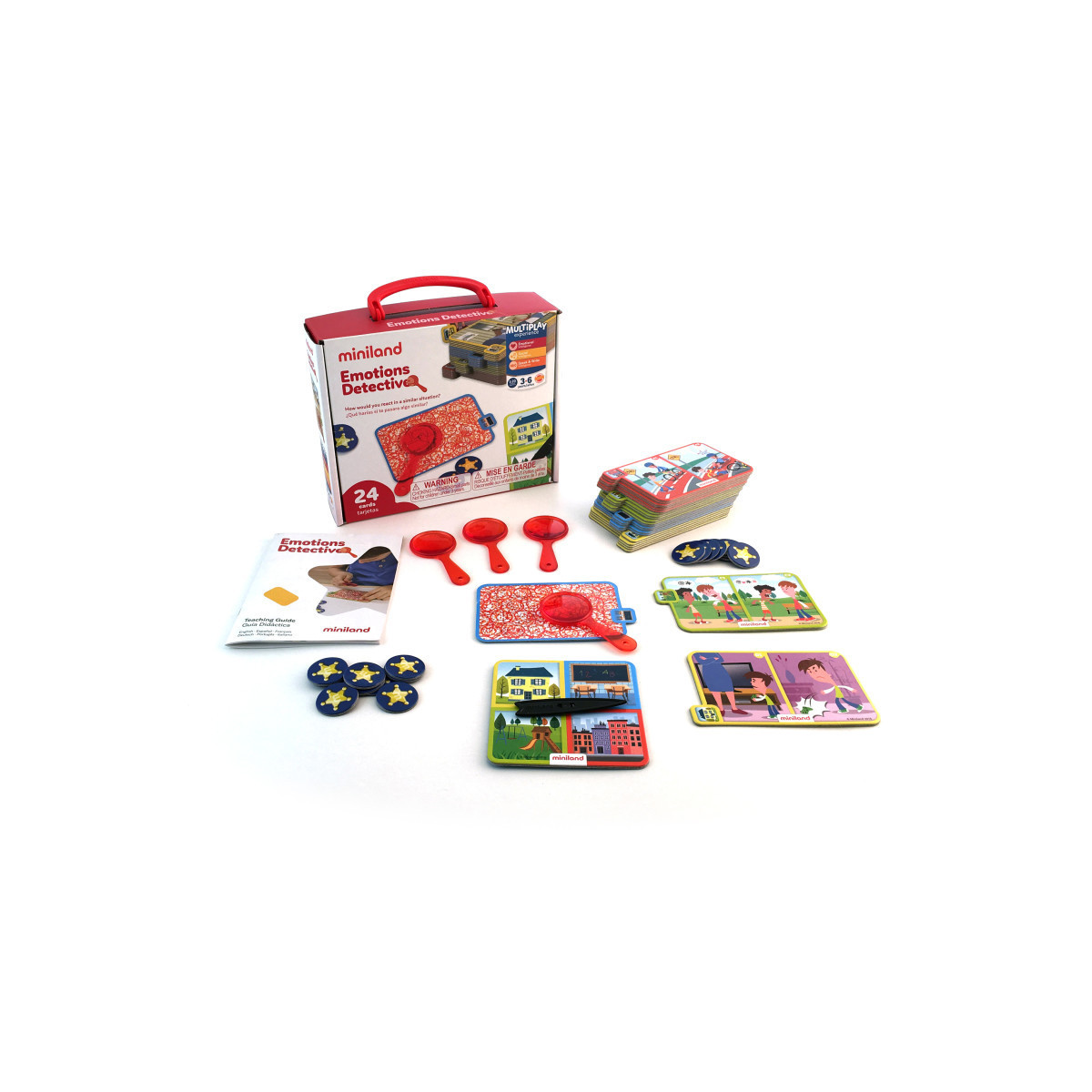 A cooperative game with which participants will discover how to control their moods. It includes cards that conceal an everyday action and provoke anger or sadness. The little detectives will have to find out what it's all about to then come up with solutions that lead to a positive feeling. SEL (social and emotional learning) classroom resource. Includes 24 cards, 18 stars, 1 roulette, 4 magnifiers and 1 brochure. For 3-6 years.