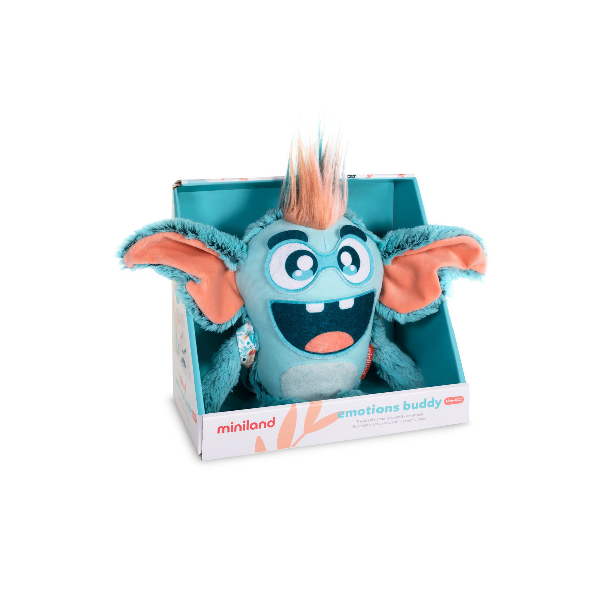 - It includes a bright heart that is inserted into the plush toy and illuminates with 5 different colors, so little ones can freely associate them with each emotion.