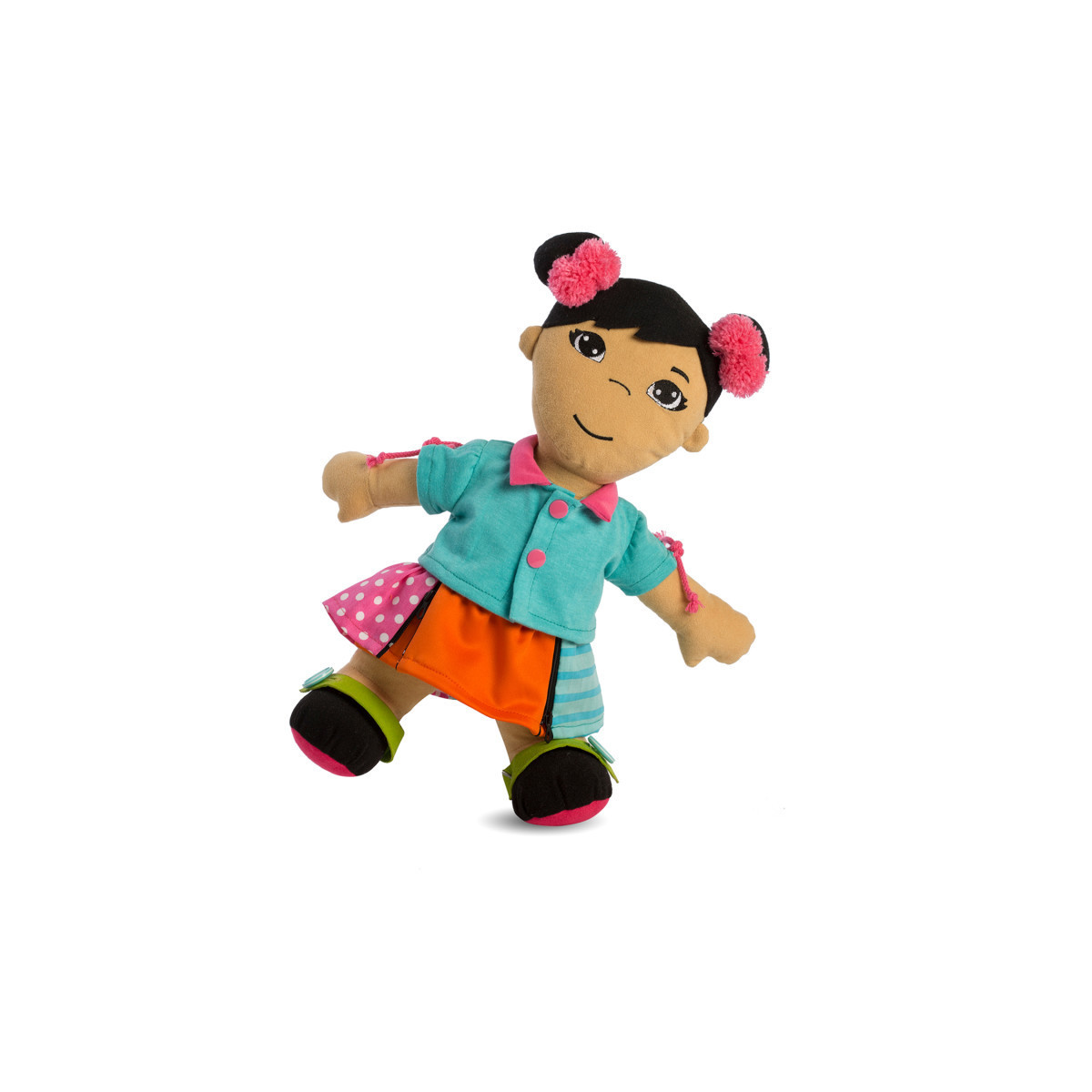 A different way for young children to acquire skills and personal autonomy. They contribute to the development of manual skills. The child will learn to dress and undress him/herself through playing with the dolls: fastening buttons, zippers, snaps, shoe laces, buckles and more, while playing with dolls in their traditional multi-cultural outfits. These dolls help them develop respect for the diversity of races and genders, and learn about their community and others communities around the world.