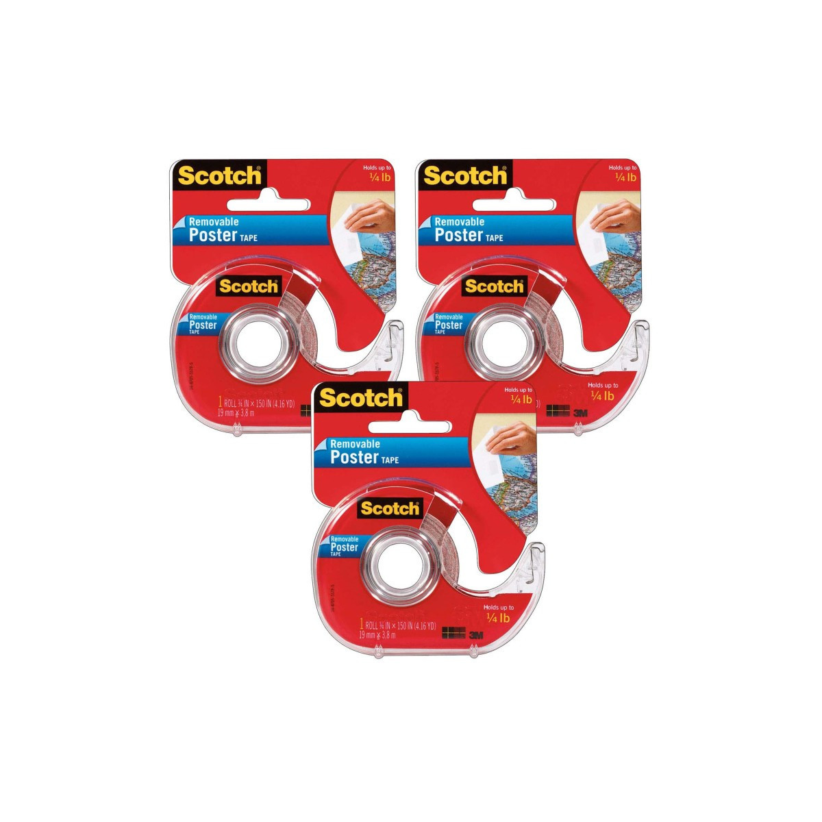 Landlord, boss and mom approved, Scotch Removable Poster Tape is your go-to solution for mounting posters in the home, dorm, classroom and office. Equipped with strong adhesive on both sides, this tape lets you reinvent your decor quickly and easily and removes in a snap without damaging your walls. This poster tape rolls out smoothly and cuts easily thanks to its handy dispenser. Forget trying to create a sticky loop with one-sided tape and get a beautifully flush finish every time with Scotch Removable Poster Tape. Each roll measures 3/4" x 150". Color: Clear. Sold as a pack of 3 rolls