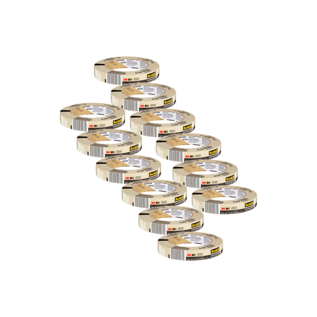 Scotch Contractor Grade Masking Tape is a general purpose masking tape designed for use on non-damageable surfaces. Use on vinyl, carpet, metal, and plastic for the protection you need to get the job done. Scotch Contractor Grade Masking Tape holds to surfaces for up to 3 days and then removes easily without leaving any sticky residue behind. Sold as a pack of 12 rolls.