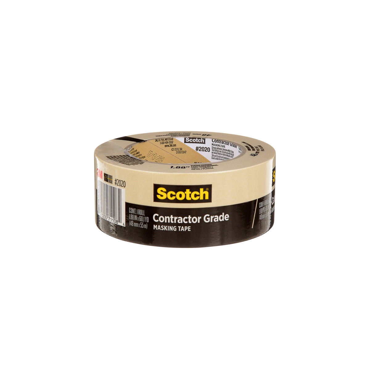 Scotch Contractor Grade Masking Tape is a general purpose masking tape designed for use on non-damageable surfaces. Use on vinyl, carpet, metal, and plastic for the protection you need to get the job done. Scotch Contractor Grade Masking Tape holds to surfaces for up to 3 days and then removes easily without leaving any sticky residue behind.
