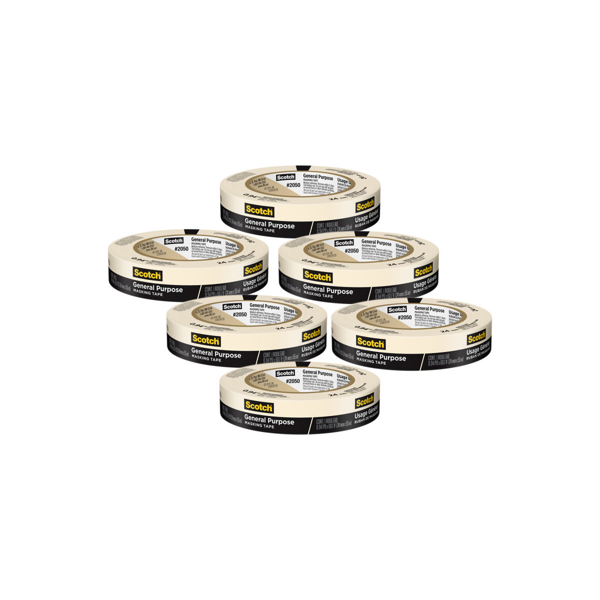 Scotch General Purpose Masking Tape holds to surfaces for up to 5 days and then removes easily without leaving any sticky residue behind. Great for labeling, bundling, and general masking applications. Sold as a pack of 6 rolls.