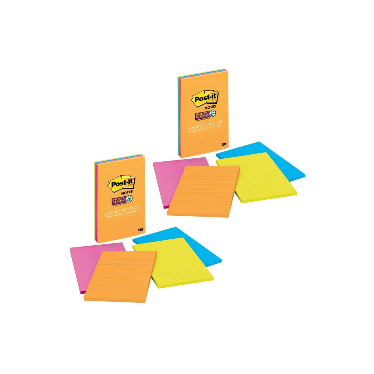 Post-it Super Sticky Notes are fantastic for work or home because they stick almost anywhere and stay put. They are great for longer lists and keeping track of daily tasks. A World of Color Rio de Janeiro Collection expresses dramatic colors that celebrate this Brazilian metropolis. The lines help keep your thoughts straight. Colors include Blue, Orange, Pink, and Yellow. All Post-it Notes are recyclable. Measures 4" x 6". Includes 4 pads/pack, 45 sheets/pad for a total of 180 sheets/pack. Sold as 2 packs for a total of 8 pads.