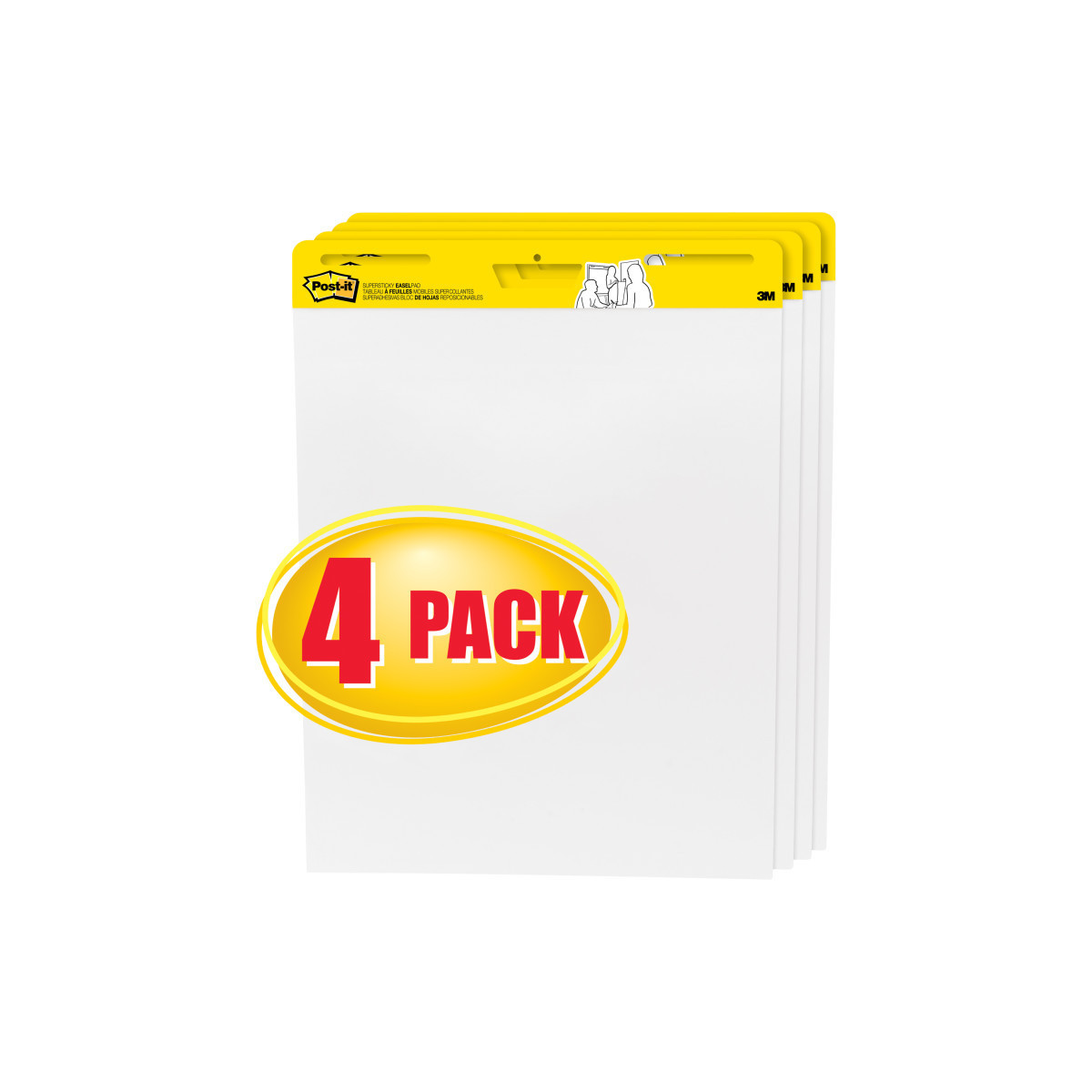 With sheets that can stick almost anywhere, Post-it® Easel Pads foster the imaginative thinking that lays the foundation for future growth. So when you want to successfully plan, collaborate, and build on ideas, they're ready to help you succeed. Post-it® Easel Pad sheets feature premium, bright white paper that resists marker bleed-through; they stick to most surfaces and can be repositioned again and again, without surface damage. The sturdy back card features a handle for easy portability and universal slots to fit most easel stands. Sheets are 25" wide x 30" long. Includes 4 pads, each pad includes 30 sheets.