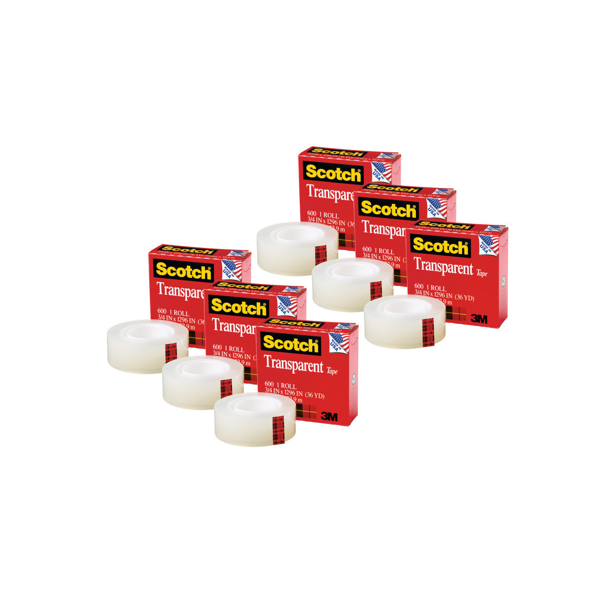Scotch Transparent Tape is the classic, glossy finish tape. A great value for general purpose wrapping, sealing and mending. Clear when applied and does not yellow. Scotch Transparent Tape Refills fit into all standard dispensers, glide off the roll smoothly, and cut easily-without wasted tape. Whatever you need to get done, wherever you are-home, work or school, Scotch Transparent Tape Refill Rolls are clearly ready to go to work. Crystal clear and photo safe. Tape measures 3/4" x 1296", with a 1" core. Made in the USA with globally sourced materials. Sold as a pack of 6 rolls.