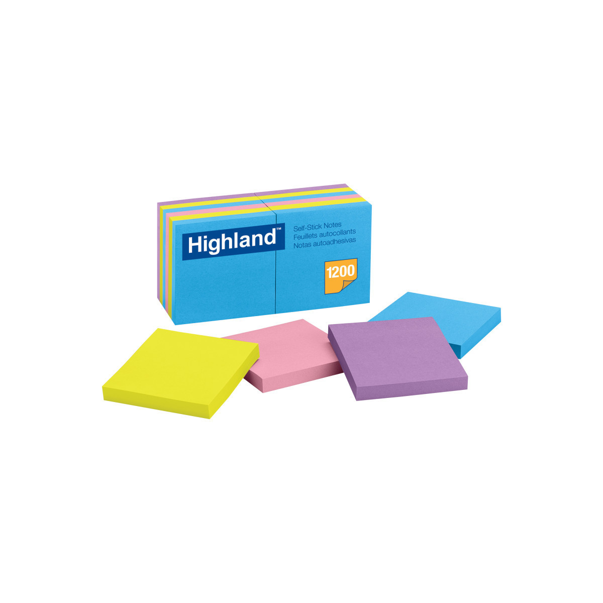 Highland Self-Stick Notes are perfect for reminders or a short to-do list. These notes in assorted bright colors will get your message across. Each pack includes 12 pads per pack, 100 sheets per pad, for a total of 1200 sheets per pack. Measures 3" x 3".