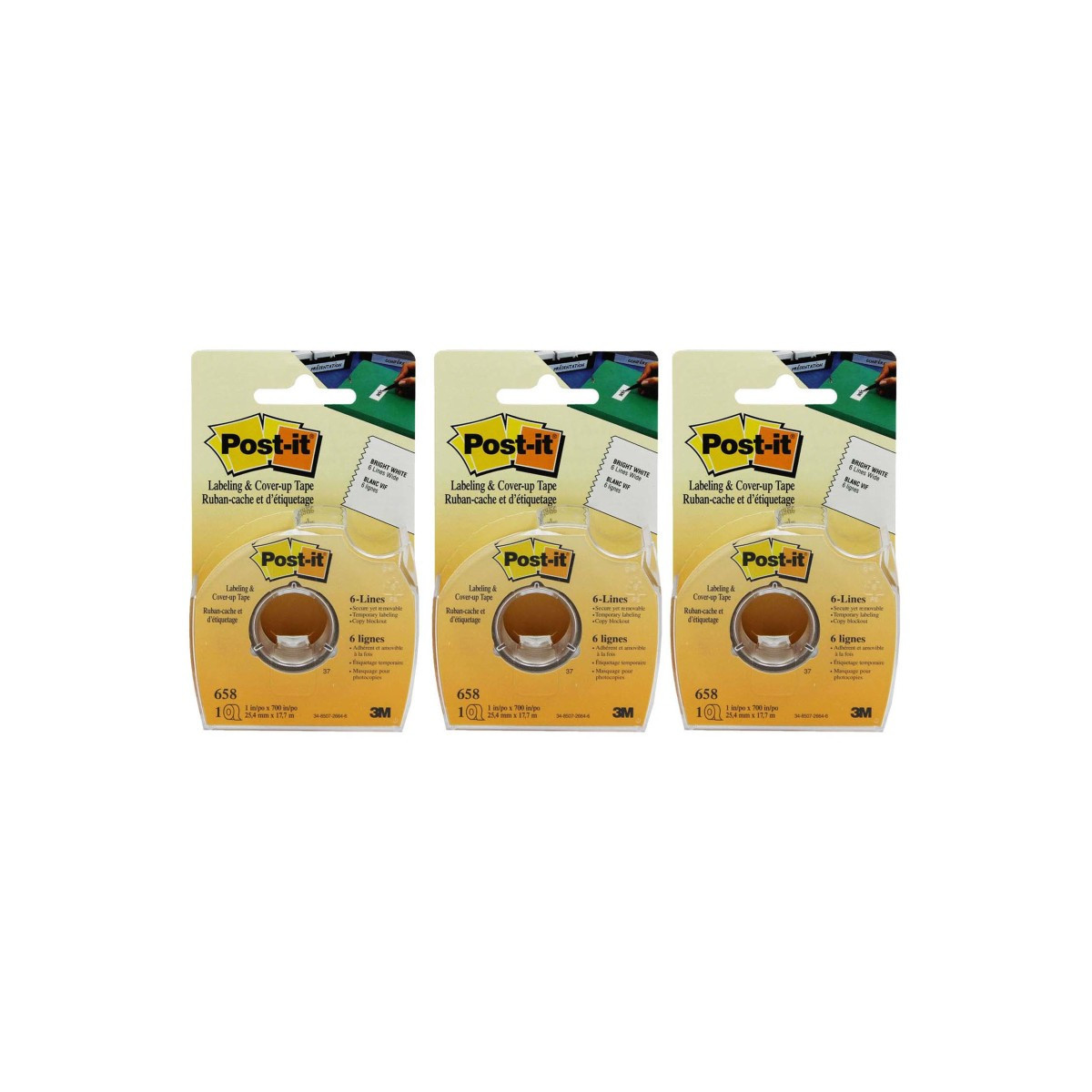 No one will ever know you goofed when you use Post-it Labeling and Cover-up Tape. It covers mistakes neatly, is easy to write on, and is virtually invisible on copies. 700-inch long roll is wide enough to cover six lines of standard-sized type. Each roll measures 1" x 700". Sold as 3 rolls.