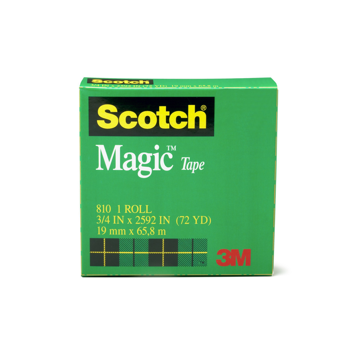 Scotch Magic Tape works as hard as you do to fix all the little imperfections at home, school and the office. The Scotch Brand's famous matte-finish invisible tape uses unique 3M adhesive technology to bond tightly with paper and disappear without a trace. Write on it with pencil, pen or marker-every word is loud and clear. Each roll of tape measures 0.75" x 1296", with a 1" core. Includes 1 roll of tape.