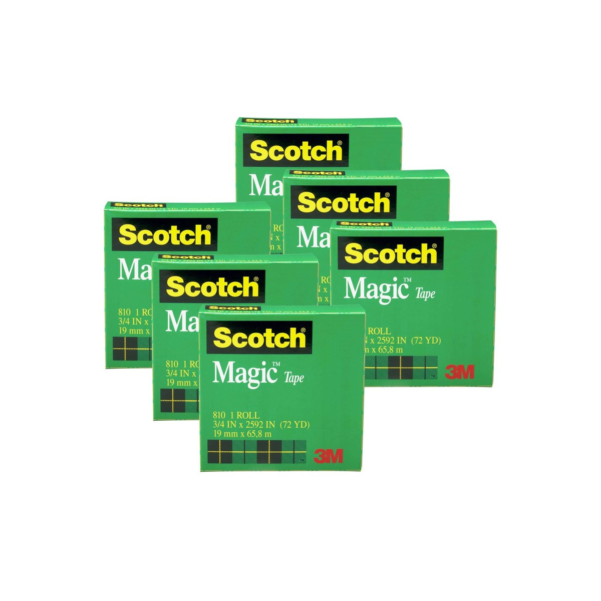Scotch Magic Tape works as hard as you do to fix all the little imperfections at home, school and the office. The Scotch Brand's famous matte-finish invisible tape uses unique 3M adhesive technology to bond tightly with paper and disappear without a trace. Write on it with pencil, pen or marker-every word is loud and clear. Each roll of tape measures 0.75" x 1296", with a 1" core. Sold as a pack of 6 rolls of tape.