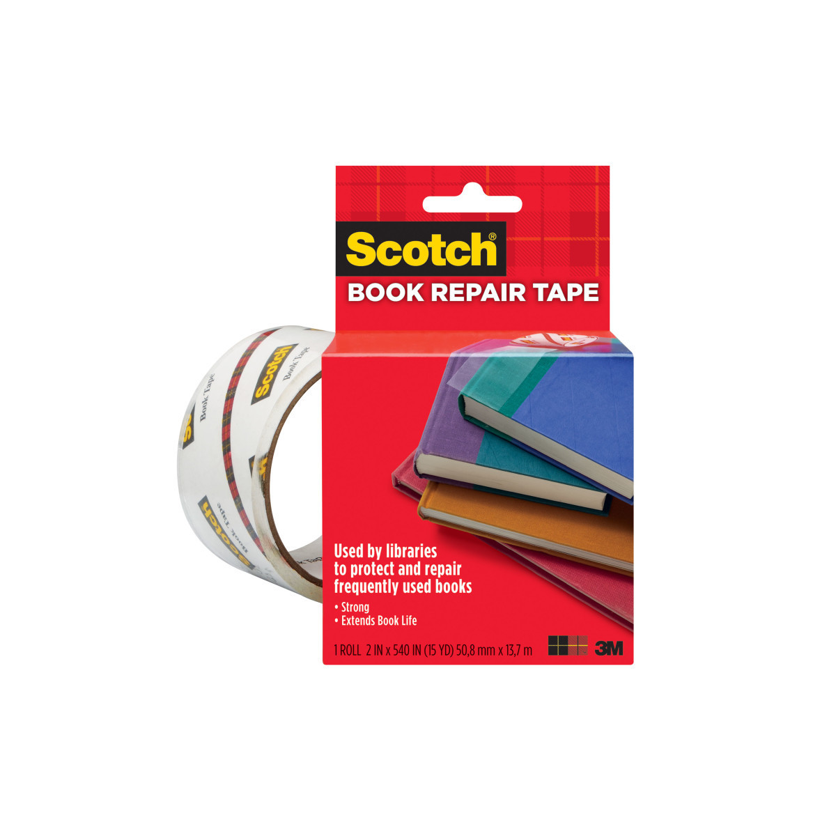 Scotch Book Tape is excellent for repairing, reinforcing, protecting and covering bound edges and surfaces. Transparent, conformable and permanent. Unwinds easily. Use on books, magazines, pamphlets, record album jackets and more. Each roll measures 2 in x 15 yds, with a 3 in core.