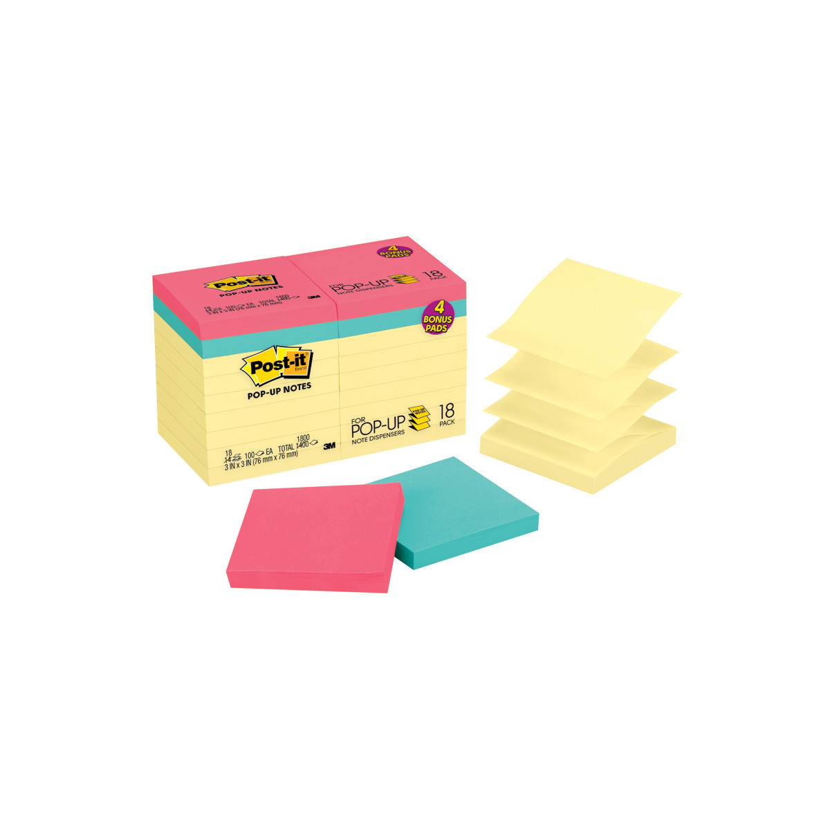 Post-it® Dispenser Notes in 3 in x 3 in are accordion-style notes are specially designed to work in Post-it® Note Dispensers, and allow you to always have a note nearby to capture great ideas. Unique adhesive designed for use with paper or in planners. Use for notes or reminders on doors, windows or walls. Classic Canary Yellow color helps your note break through. Free pads in bright colors allow you to keep your message front and center. Post-it® Dispenser Notes are recyclable and the paper is sourced from certified, renewable and responsibly managed forests. 18 Pads/Pack, 100 Sheets/Pad.