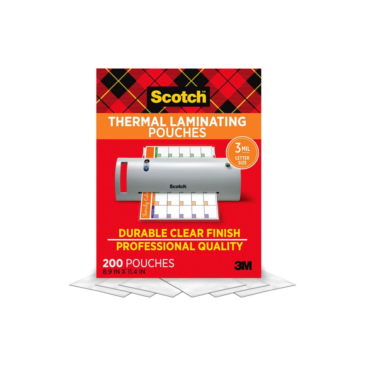 Scotch™ Thermal Laminating Pouches protect documents that you use frequently. Protects and adds professionalism to business documents. Great for signs, flyers, schedules, certificates, to-do lists, and other frequently used documents. Ultra clear to let important information show through. Ideal for marker-proof, tear-proof and spill-proof paper items that you want to last in the home, office or classroom. Recommended to use with Scotch™ Thermal Laminators. Letter Size, for items up to 8.5 in. x 11.4 in. Pack of 200.