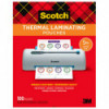 Scotch™ Thermal Laminating Pouches protect items from damage and are for use with thermal laminators. These 5 mil thicker pouches are great for a very sturdy and more durable finish. Protects and adds professionalism to business documents. Great for signs, flyers, schedules, certificates, to-do lists, and other frequently used documents. Ultra clear to let important information show through. Ideal for marker-proof, tear-proof and spill-proof paper items that you want to last in the home, office or classroom. Recommended to use with Scotch™ Thermal Laminators. Letter Size, for items up to 8.5 in. x 11.4 in. Pack of 100. 5mil.