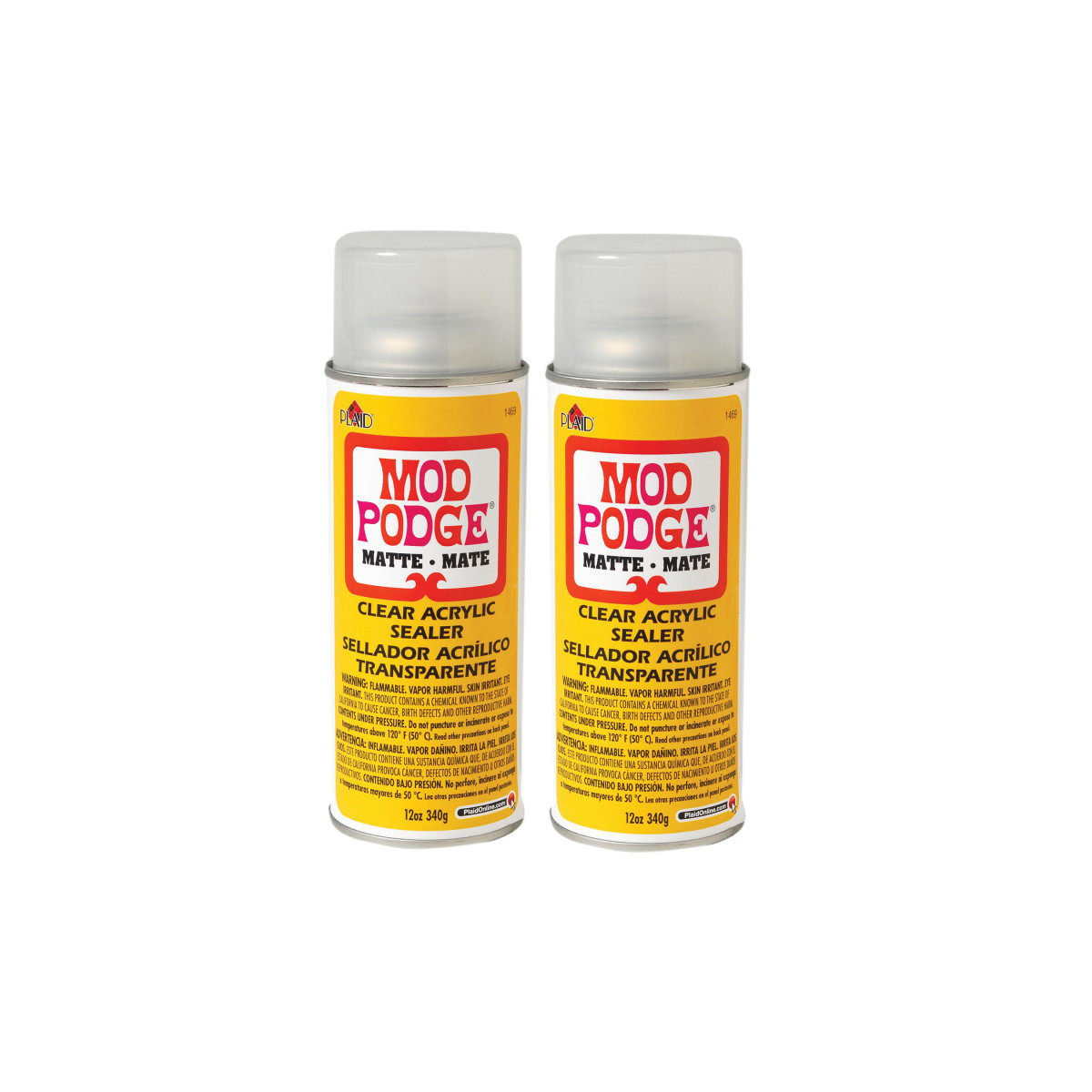 Preserve your hard work with the Mod Podge Matte Clear Acrylic Aerosol Sealer. Ensure all your arts and crafts stand the test of time with a layer of this innovative matte sealer. This crystal clear, quick-drying, matte formula will not run, drip, or yellow. Protect everything from paint to wood to stain with this easy-to-use decoupage spray. Equip your craft closet with this iconic brand of clear acrylic sealer for a sleek finish every time. Seal your acrylic paint projects, your home decor pieces, and your decoupage paper creations with this versatile sealant. Add Mod Podge Matte Clear Acrylic Aerosol Sealer to your art supplies for durable protection to all your DIY projects. Sold as a pack of 2.