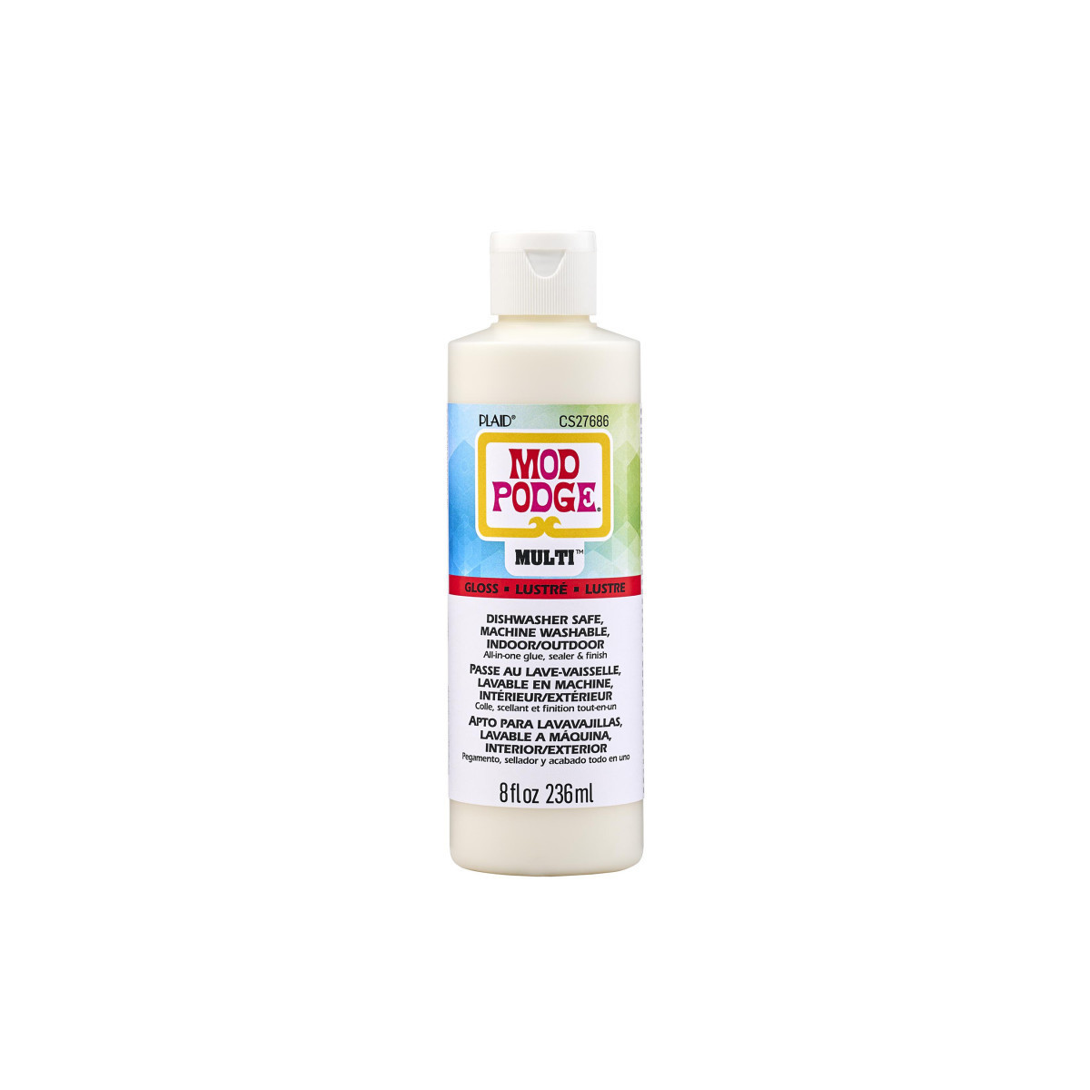 For over 55 years Mod Podge has been America's favorite glue, sealer, and finish. Mod Podge Multi dries clear, leaving a smooth, gloss finish. Preserve the beauty of your outdoor decoupage projects and more with this all-in-one glue, sealer, and finish. Preserve the beauty of your decoupage projects and more with this Gloss multi-purpose, all-in-one sealant, glue, and finish. Use this decoupage glue to create decoupage projects on wood, fabric, plastic, and canvas! Let your creativity come alive with the limitless possibilities of Mod Podge Multi Gloss.