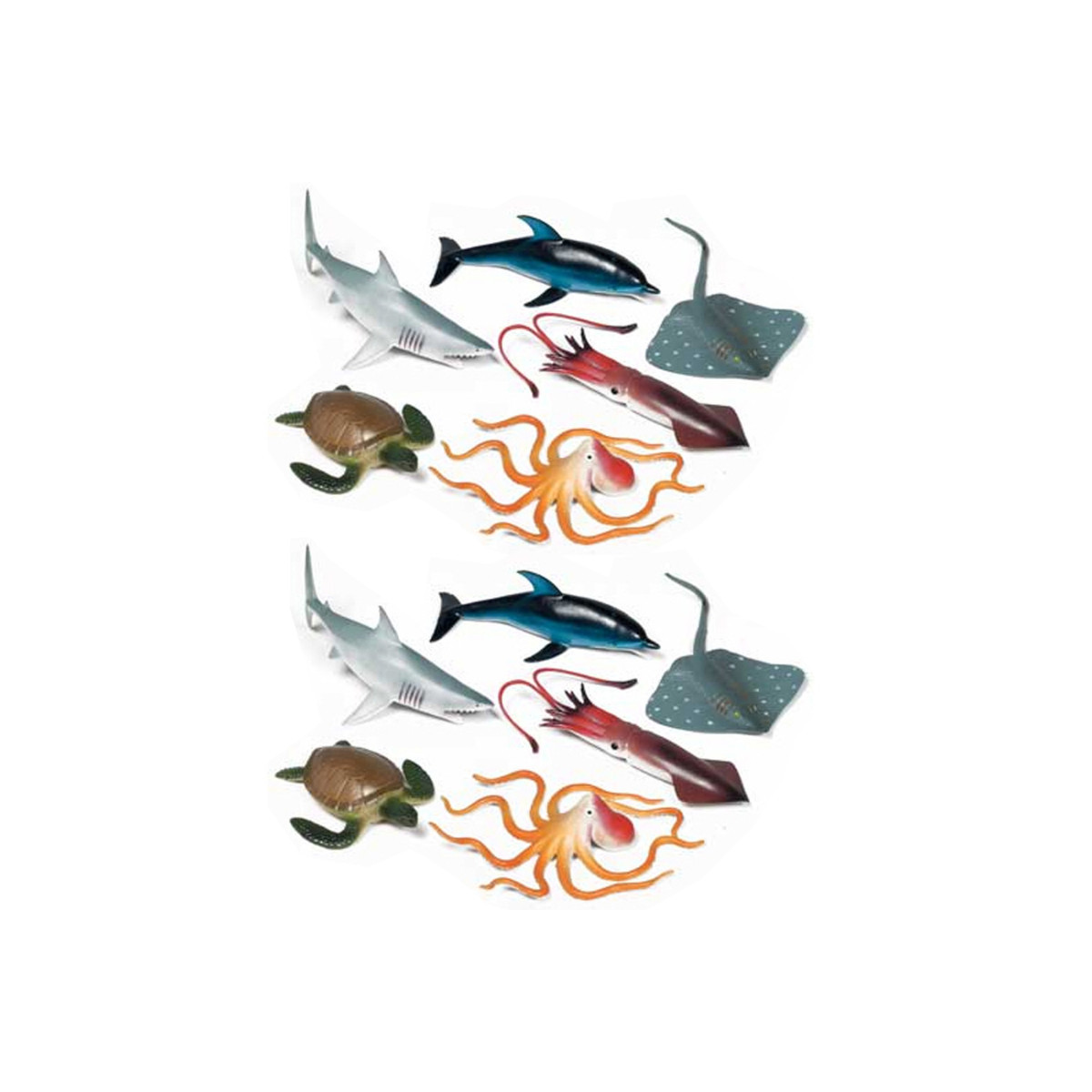 Realistically detailed plastic animal playsets encourage learning about the natural world. Marine animals measure approximately 7". Each set includes 6 pieces. Sold as 2 sets for a total of 12 pieces.