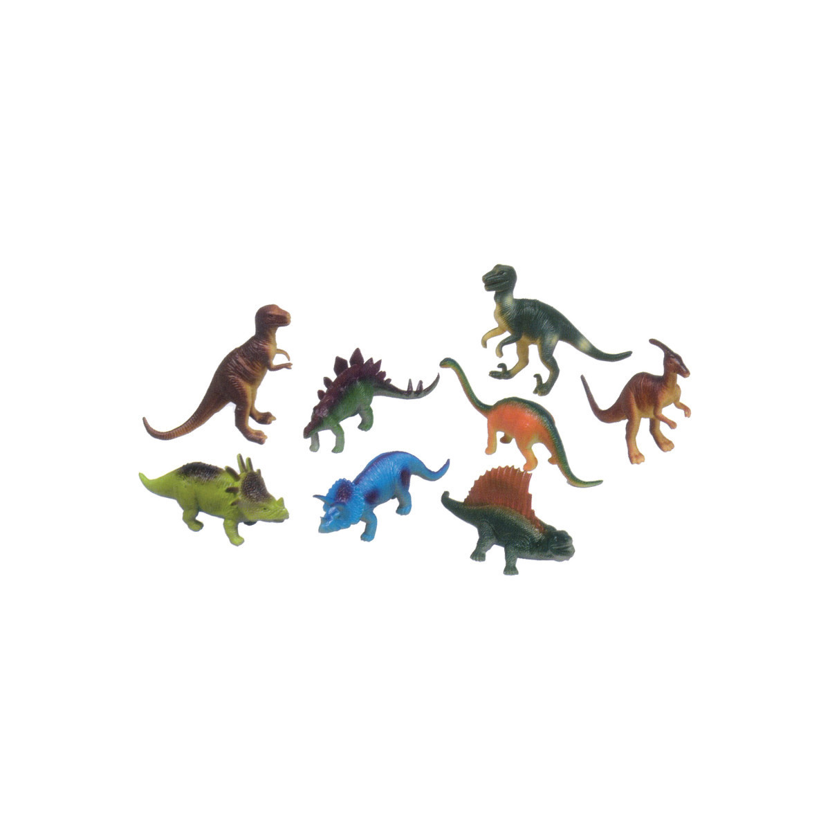Realistically detailed plastic animal playsets encourage learning about the natural world. Eight piece set includes t-rex, deinonychos, diplodocus, parasaurolophus, stegosaurus, triceratops, styracosaurus and dimetrodon. Dinos measure approximately 6"-7" measured diagonally.
