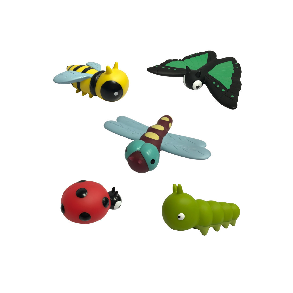 Set of 5 includes butterfly, bee or wasp, caterpillar, ladybug and dragonfly.