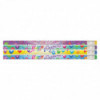 All of our teacher/designer pencils are very colorful and have catchy phrases and/or graphics. Unique Art and individual designs created by in-house art director. These wood-cased pencils are manufactured in the USA. Round, wooden, high-quality #2 graphite solid core with metal ferrule and smooth latex-free erasers that provides easy grip and control for writing or drawing. Available either in foil or film transfer wraps. Pack of 144 pencils.