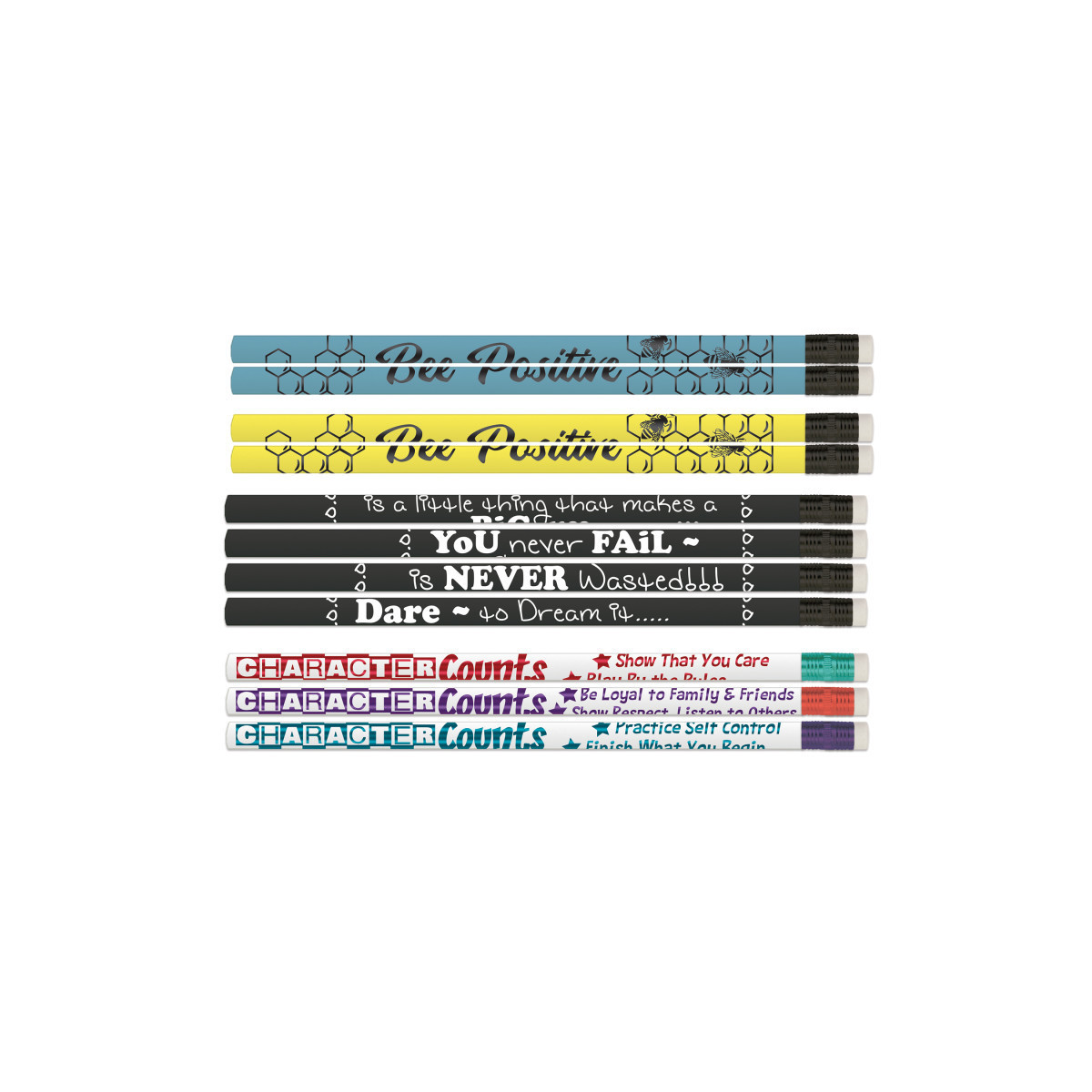 Assorted number two pencil with eraser. Strong, break resistant, exclusive graphite lead ideal for drawing, sketching or writing. Soft eraser make it easy to quickly and cleanly wipe away mistakes. Perfect for kids, teens and adults to use in classrooms, offices and homes.