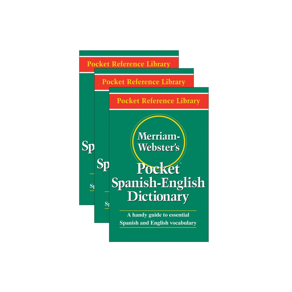 The Merriam-Webster's Pocket Spanish-English Dictionary is a compact guide to essential Spanish and English vocabulary. Nearly 45,000 entries include English pronunciations given in the International Phonetic Alphabet (IPA). Bidirectional: English to Spanish and Spanish to English. Special sections include Conjugation of Spanish Verbs, Common Spanish Abbreviations, Irregular English Verbs, and English and Spanish Numbers. Includes 448 pages. Measures 2.5" x 5.375". Flexi paperback binding. Sold as a pack of 3 identical books.
