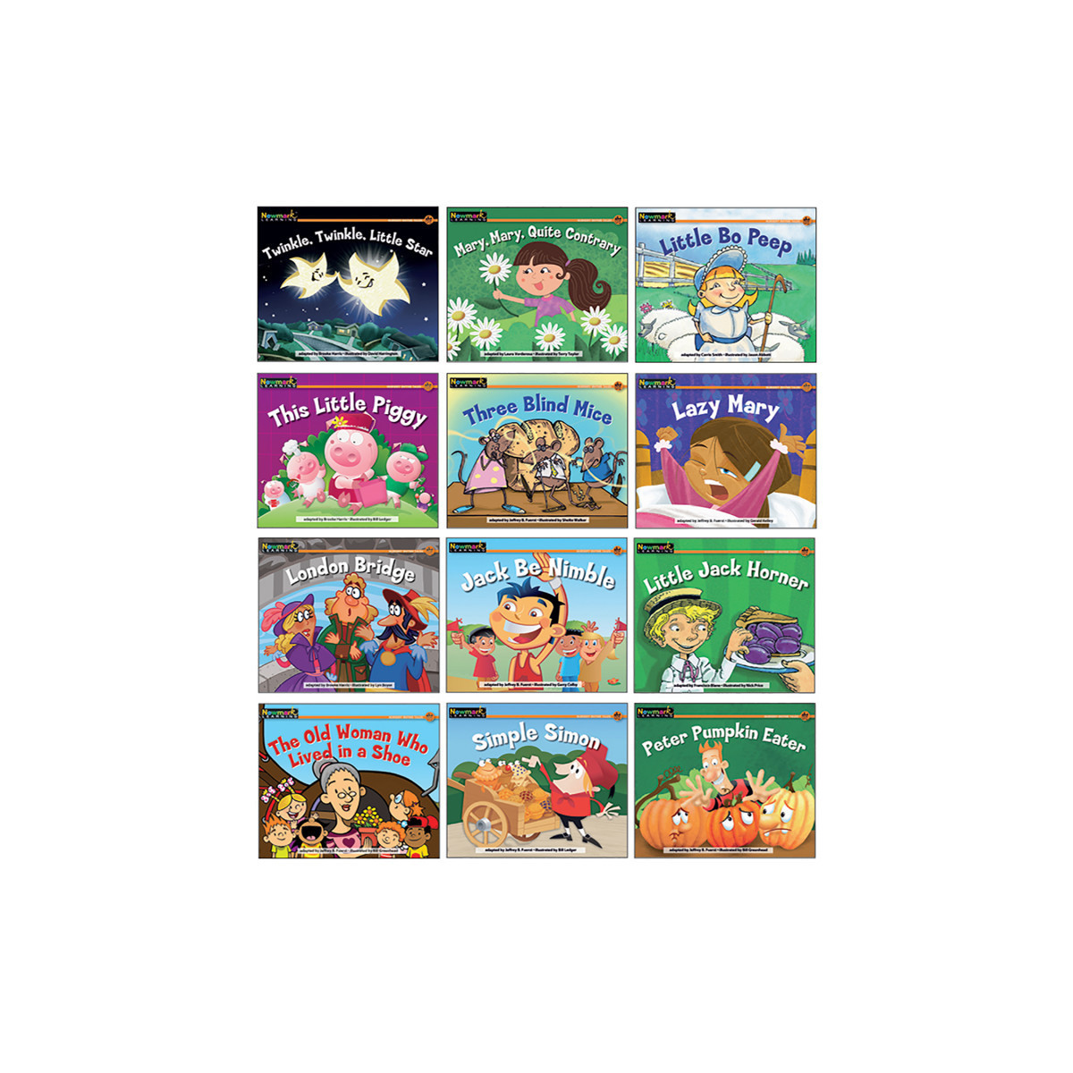Based on classic nursery rhymes, these engaging stories are ideal for beginning readers! Expertly leveled books integrate literacy instruction with engaging traditional tales and gorgeous illustrations for grades PreK-1. BONUS comprehension skills and sight word activities included in every book. Levels A-I. Set of 12 books, full color, 16 pages.