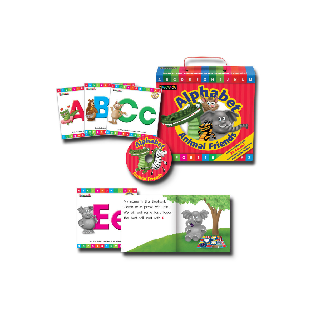 Adorable animals help young children master key early language skills. Perfect for PreK-K teachers, day care and nursery school providers and parents preparing for school readiness. This set of 24 alphabet books to help young children learn phonemic awareness, letter recognition and formation, sound and symbol relationships, and oral language vocabulary.