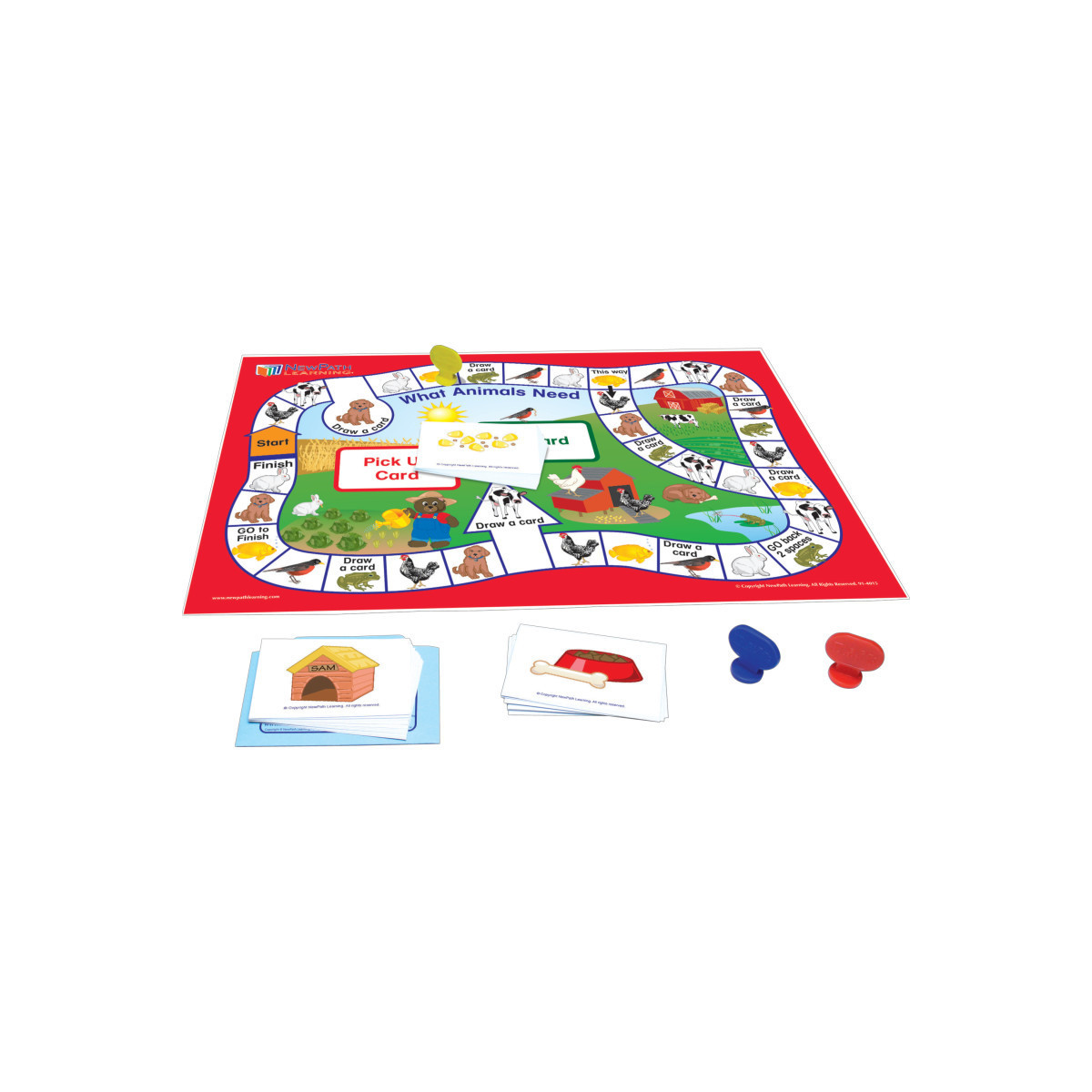 Ready-to-go games and matching flash cards provide students with fun activities to learn about animals and their basic needs, including shelter and food. Packaged in a durable pouch, the game can be used in the classroom, after school programs or home practice and are perfect for differentiated instruction. Designed for either teacher-directed or independent play in groups of 2-4 students, each game includes a Laminated, Hands-On Board game with 30 illustrated, self-checking cards and game materials for up to 4 students; two sets of 30 Flash Cards printed on heavy 4" x 5.5" stock, providing matching activities to challenge students to correlate up to 3 associated attributes; and a Teacher's Guide with step-by-step instructions as well as recommended, additional skill-building activities.