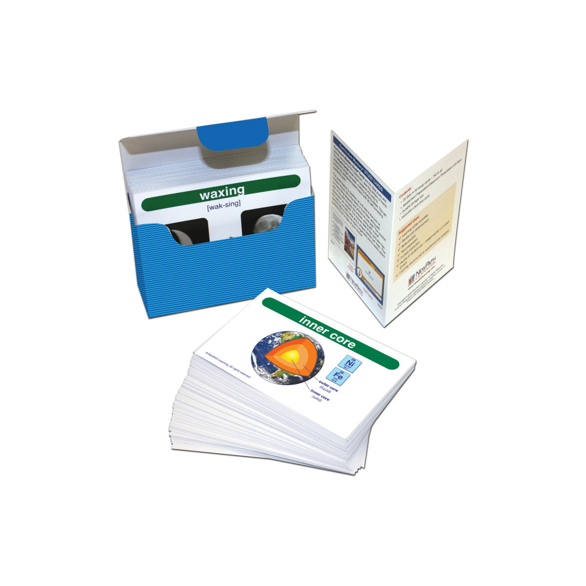 NewPath's Science Vocabulary Builder flash card sets provide comprehensive coverage of the key terms in the Disciplinary Core Ideas of the Next Science Generation Standards and current state standards. Colorfully illustrated, the cards can be used to conduct a variety of engaging activities and games which foster lasting understanding of key concepts. Includes 200 Flash Cards- colorfully illustrated and printed on 4" x 5-1/2" heavy stock — teacher resource guide with suggested activities and a trial subscription to NewPath's Online Learning Program. Each card features the term, its pronunciation and a graphic depiction on one side and the term's definition on the reverse.
