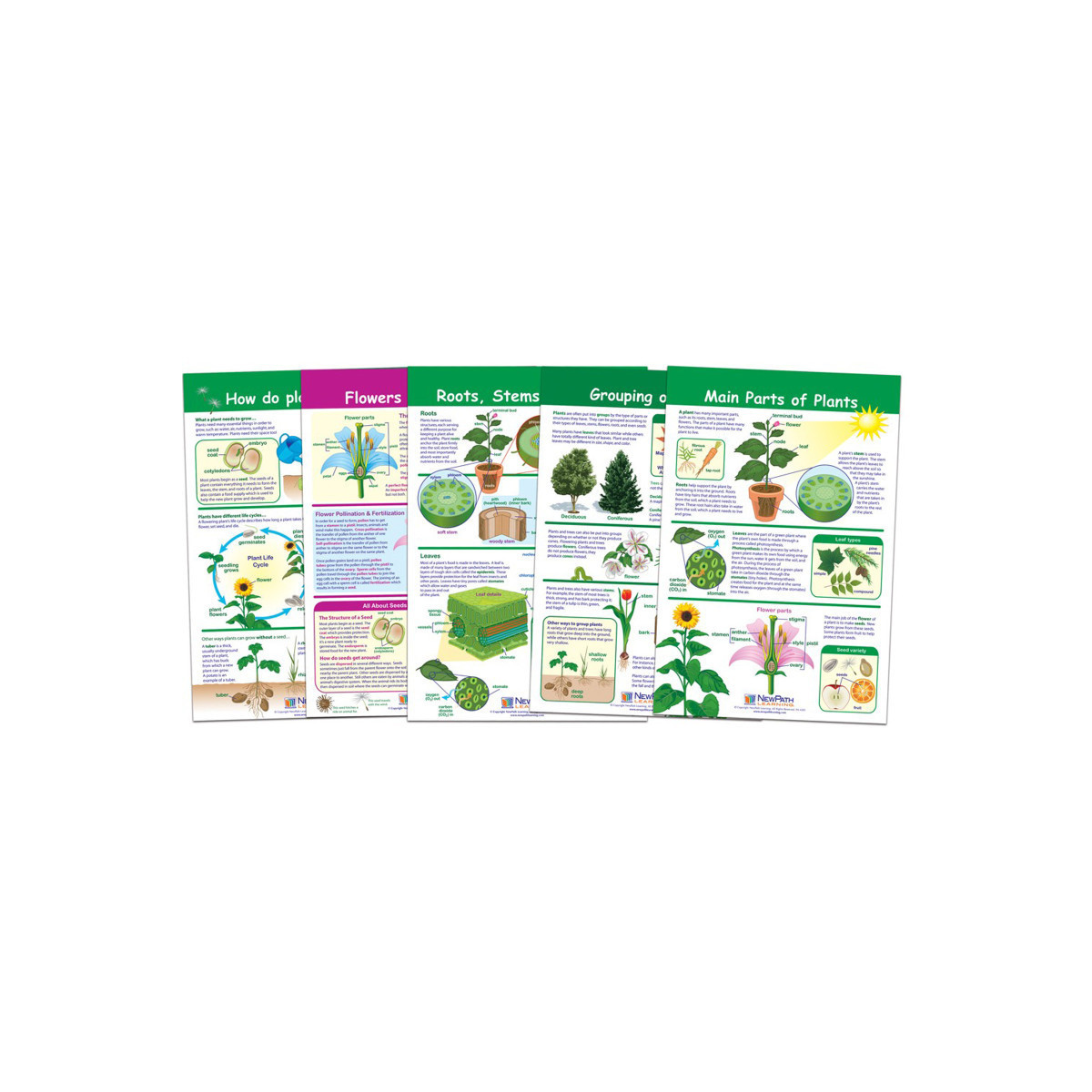 Each Bulletin Board Chart Set includes a collection of separate posters, each covering a separate, curriculum topic. Uniquely designed, while one side can be posted for student reference, the reverse features dry-erase activities perfect for individual student review or as a learning center activities! Graphic images and hands-on activities combine to provide comprehensive coverage of essential student skills and cover the current state and national standards – including Next Generation Science (NGSS)! Each 12" x 18" Chart is laminated and double-sided – Side 1 features a graphic overview of the topic and Side 2 provides "write-on/wipe-off" activities. Covers Flowers & Seeds; How Do Plants Grow?; Groupings of Plants; Main Parts of Plants; and Roots, Stems & Leaves.