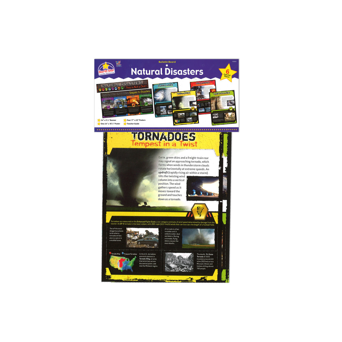 Explore the destructive power of natural disasters and uncover the science behind the devastation. Featuring vivid colors and striking photography, this set examines commonly occurring natural disasters, their impact on human populations and the environment, and historical examples of disasters worldwide. Features a 34" x 51/2" (86.4 x 14 cm) banner, five posters—one 34" x 16 1/2" (86.4 x 41.9 cm) and four 17" x 22" (43.2 x 55.9 cm)—and a four-page teacher guide. Includes 6 pieces.