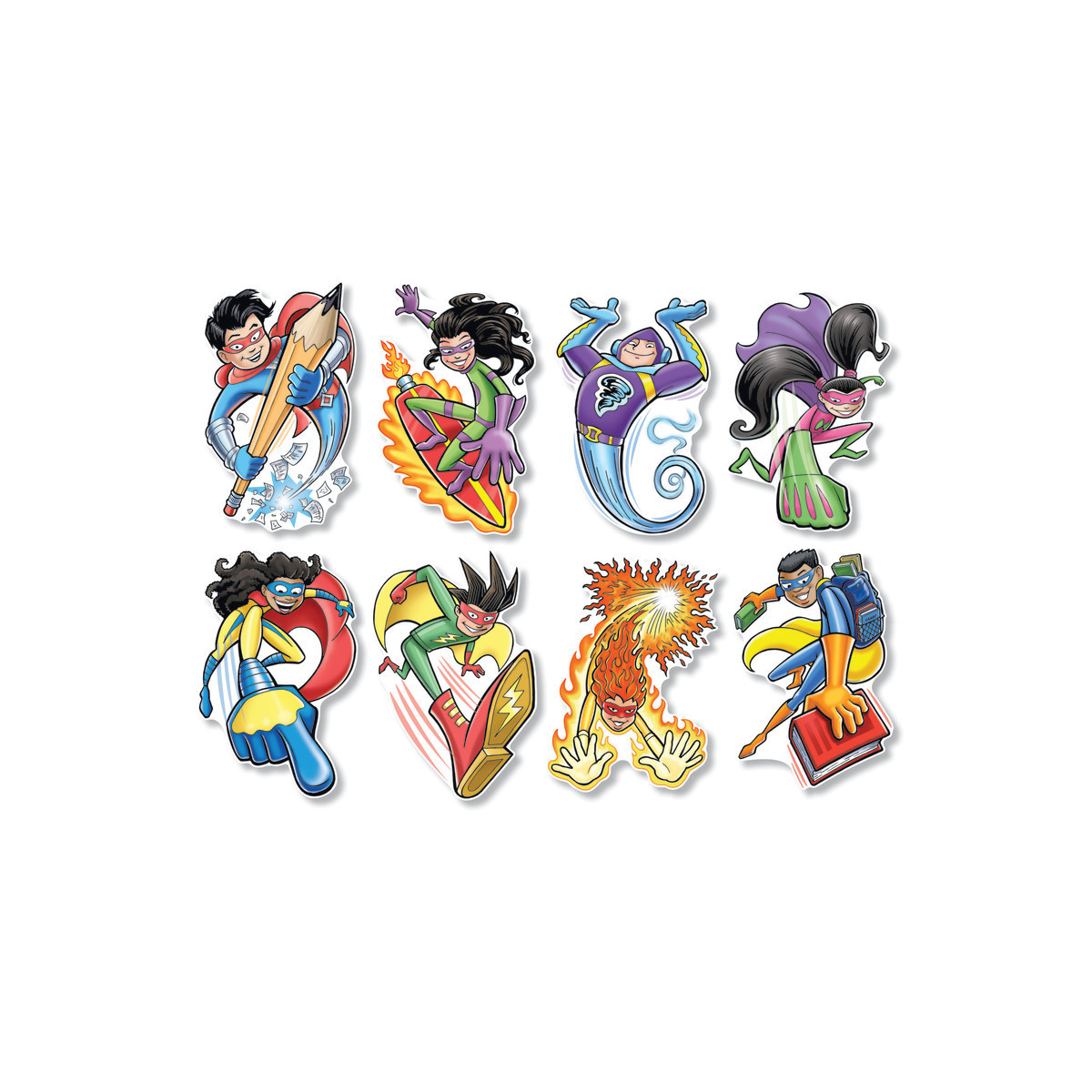 Energize your students with a burst of superhero WOW! These fun and versatile figures add a splash of color to bulletin board displays of students' work, and are ideal decorations for classroom walls and hallways. Includes eight 11" x 17" (27.9 x 43.2 cm) superheroes. 8 pieces.