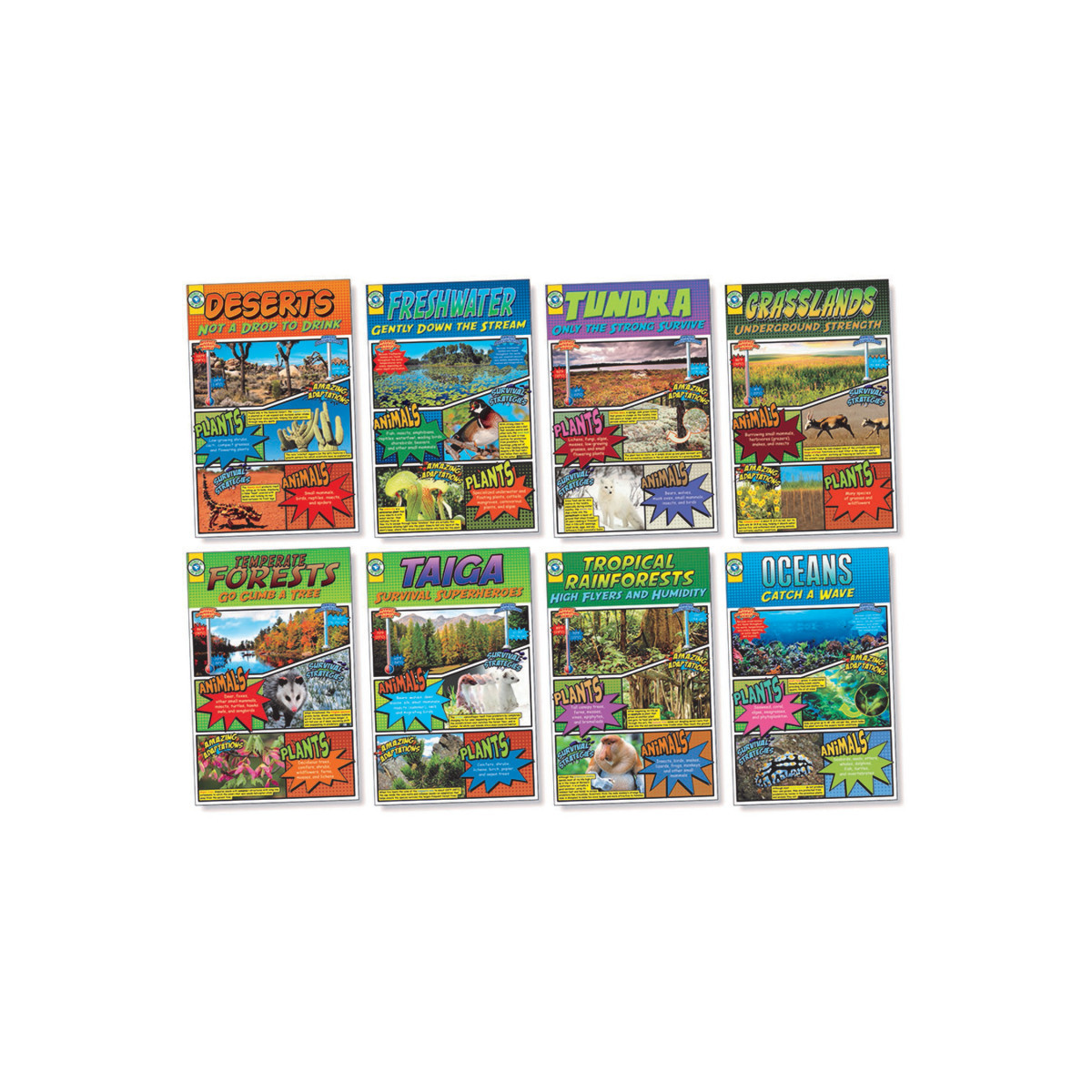 - In addition to teaching fundamental information about biomes, the posters offer interesting facts about plant and animal adaptations and survival strategies