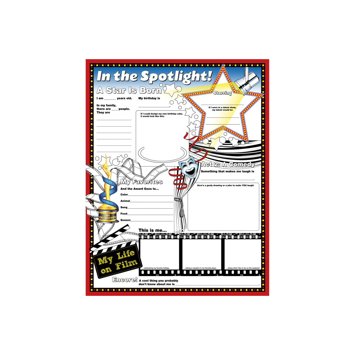 Shine the spotlight on your students individually with these imaginative activity posters. A great way to introduce classmates to each other or feature star students, these posters invite kids to share fun facts about themselves and creatively illustrate their ideas. Each package contains thirty-two 17" x 22" (43.2 x 55.9 cm) posters. Grades 3-6