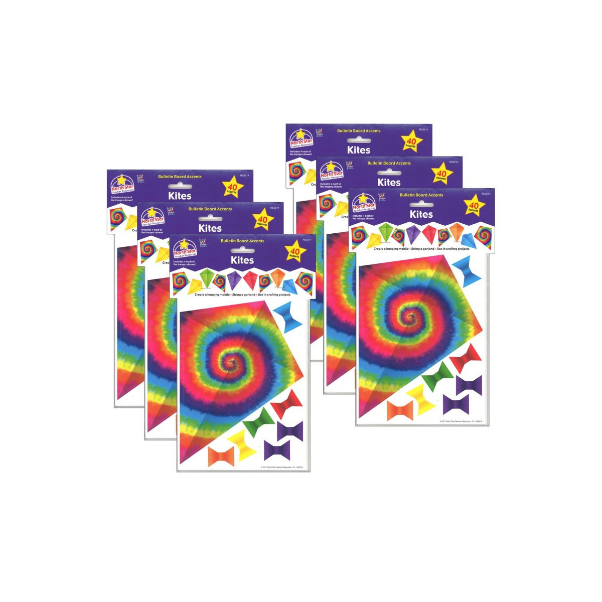 Use accents to liven up bulletin boards, desks, lockers, and cubbies! Can be used as name tags, labels, or to highlight student work. Add your own ribbon or string to craft a festive bunting, or hanging mobile. Accents are an excellent resource for use in kid-crafting or art projects. Two kite sizes are included, large tie-dyes measure 8-1/8'' H x 6 1/8'' W; small kites measure 6-1/4'' H x 4-3/4'' W, in tie-dye swirl pattern and six solid-colors. We've included bonus uncut kite bows. Just cut out bows to add with your ribbon or string to create kite tails for a hands-on activity. Each pack includes 40 precut kites. Sold as 6 packs for a total of 240 accents.