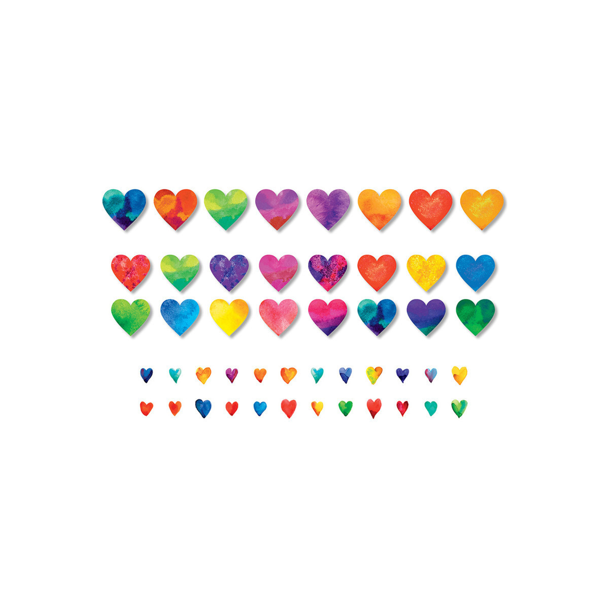 Accents liven up bulletin boards, desks, lockers, cubby spaces, or classroom centers. They can be used for tags, labels, or as student rewards. Accents are quick embellishments in crafting, card making, or art projects, and can inspire simple hands-on "maker" projects with young learners. Hole punch the hearts and they become great "swag" for the popular "brag tag" achievement necklaces. Or, simply add with your own ribbon or raffia to create a festive bunting. Hearts are sure to be "keepers" when used as lunch box love notes from parent to child, or for sending home a brief word of encouragement from teacher to student. So many possibilities! Coordinates with bulletin board set Growing Hearts & Minds. Each pack includes 48 precut paper hearts in two sizes (16 - 4" and 32 - 3.5" high), plus 48 bonus multi-colored, uncut mini hearts (1.5" and larger).