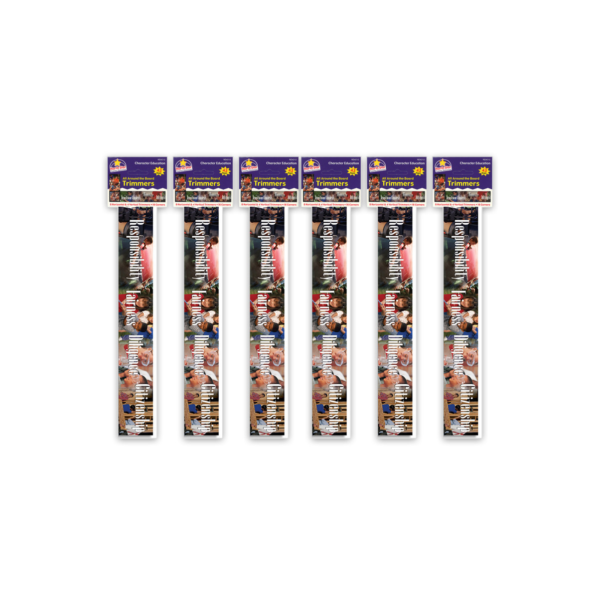 Give your bulletin boards a unique edge! Trimmers measure 3" x 39" (7.6 x 99 cm) and corners measure 3" x 3" (7.6 x 7.6 cm) for a total of 43' (13.1 m) per package. Each pack includes 12 trimmers in 2 designs (8 horizontal and 4 vertical) and 16 decorative corners in 4 designs. Sold as 6 packs for a total of 72 trimmers and 96 decorative corners.