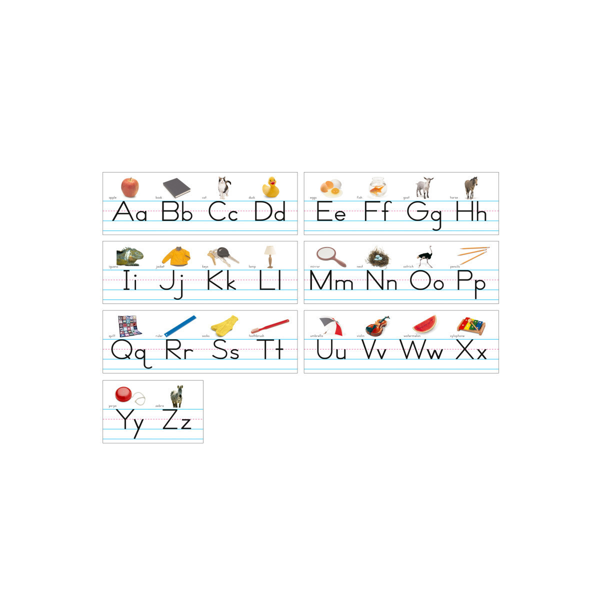Use these alphabet lines to teach the alphabet and proper letter formation. Each alphabet line measures over 14' (4.3 m) long when assembled. Seven 24 1/4" x 7 5/8" (61.6 x 19.4 cm) strips per package.