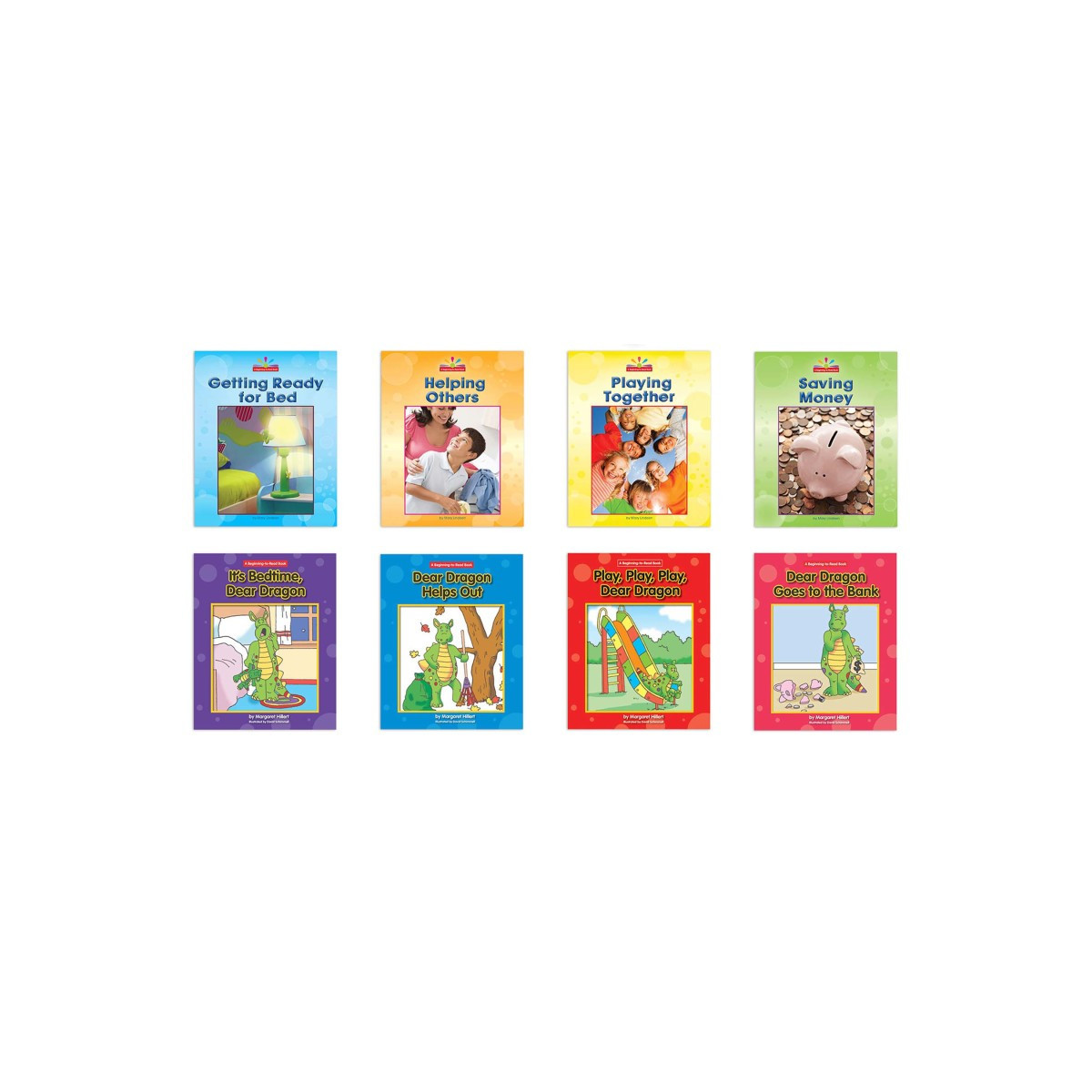 Books in the Character Education set include: Getting Ready for Bed, Helping Others, Playing Together, Saving Money (Read and Discover series) It's Bedtime, Dear Dragon; Dear Dragon Helps Out; Play, Play, Play, Dear Dragon; Dear Dragon Goes to the Bank (Dear Dragon series).