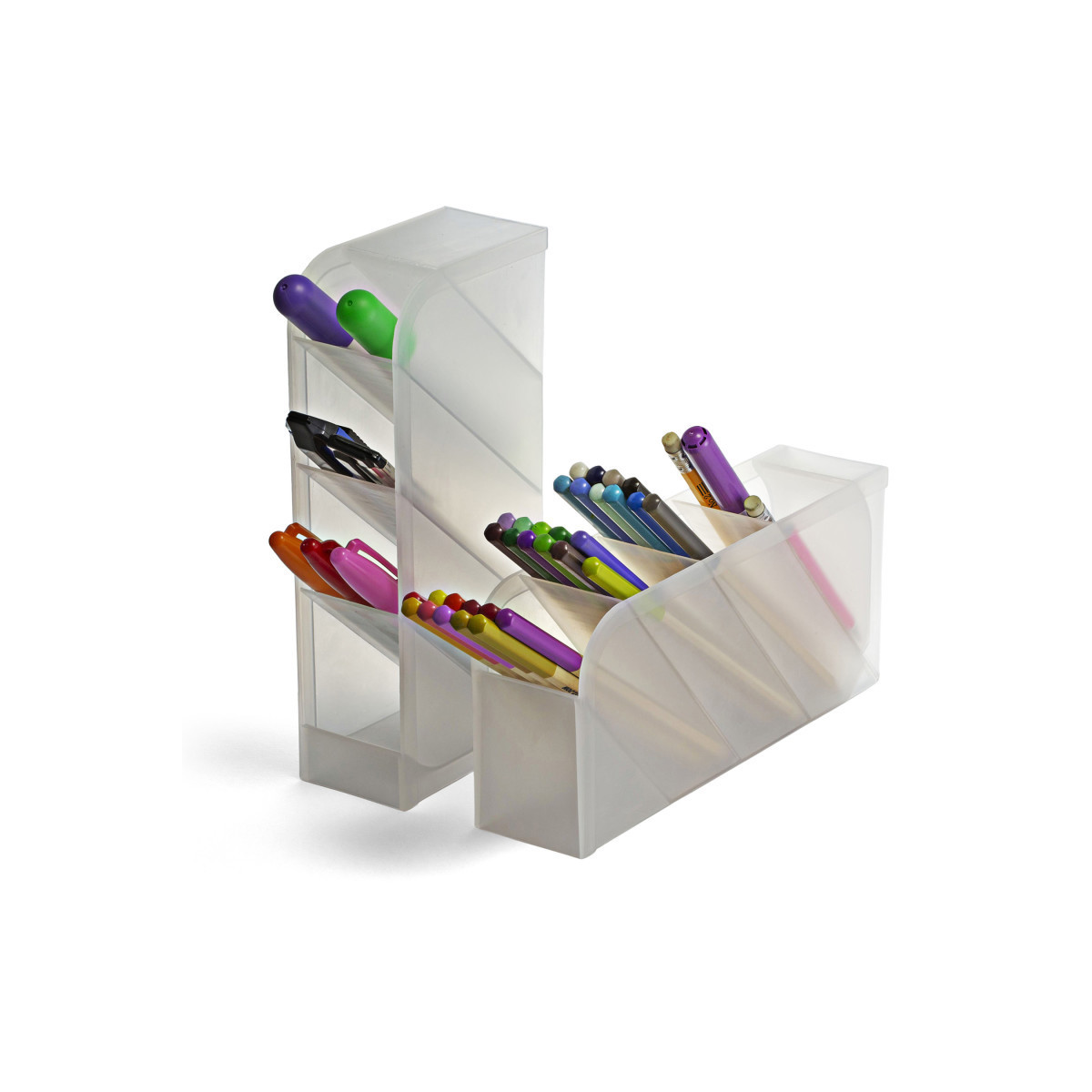 The 4-Compartment Pen Holder is perfect for small workspaces. The compartments are utilized to keep all writing utensils organized and out of the way. Versatile design. Can be displayed in horizontal or vertical positions. Made of durable and sturdy plastic. Perfect for office, home, and school. Pack of 2 holders.