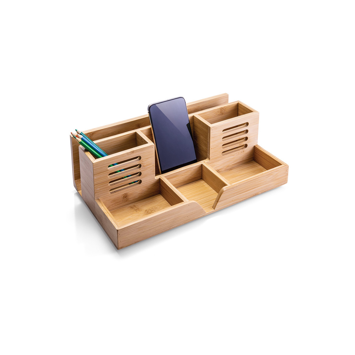 - Bamboo desk organizer is made from highly renewable, biodegradable, and carbon-negative bamboo