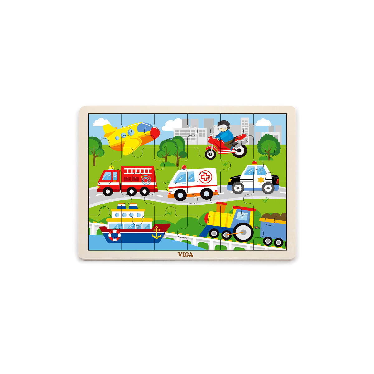 - 24-piece puzzle featuring classic vehicle illustrations.