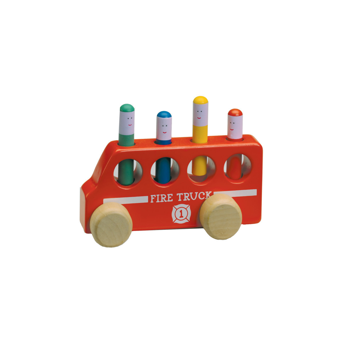 The Pop Up Fire Truck is an exciting and interactive toy that brings endless fun while helping little ones develop hand-eye coordination and fine motor skills. This vibrant fire truck features four spring-loaded figures that pop up when the truck is pushed, creating an engaging and entertaining experience. Designed for children 12 months and up, this toy encourages cause-and-effect learning and imaginative play. With its compact size of 7" x 3.5" x 3", it's perfect for little hands to push and explore, making it a great addition to any toddler's playtime collection.