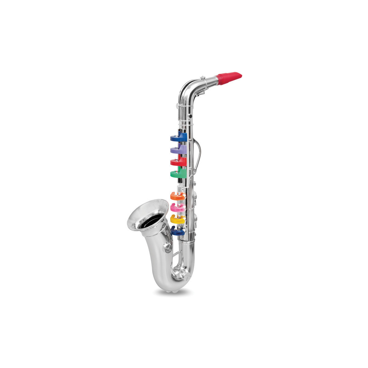 This Senior Saxophone offer 8 colored keys/notes and larger than the Junior Saxophone. A quality innovative toy for the young musician. Learn to play three songs / instructions included - Jingle Bells , Oh Susanna , Twinkle Twinkle Little Star. Recommended for children ages 3 years and up. Made in Italy.