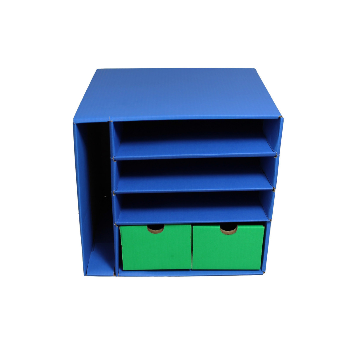 Set up classroom centers around the room and organize them all with this convenient corrugated storage unit. This unit is versatile and will work with math centers, literature centers, art centers, listening centers and many more. It has a vertical shelf (2" x 12" x 11-5/8") and three horizontal shelves (10-3/8" x 12" x 2-3/8") perfect for notebooks, folders and papers. It also has two drawers (4-7/8" x 11-1/4" x 3-1/2") that work great for storing pencils, staplers, crayons, flash cards and much more. Recycled and recyclable. Management Center measures 12-3/8"H x 13-1/2"W x 12-3/8"D.