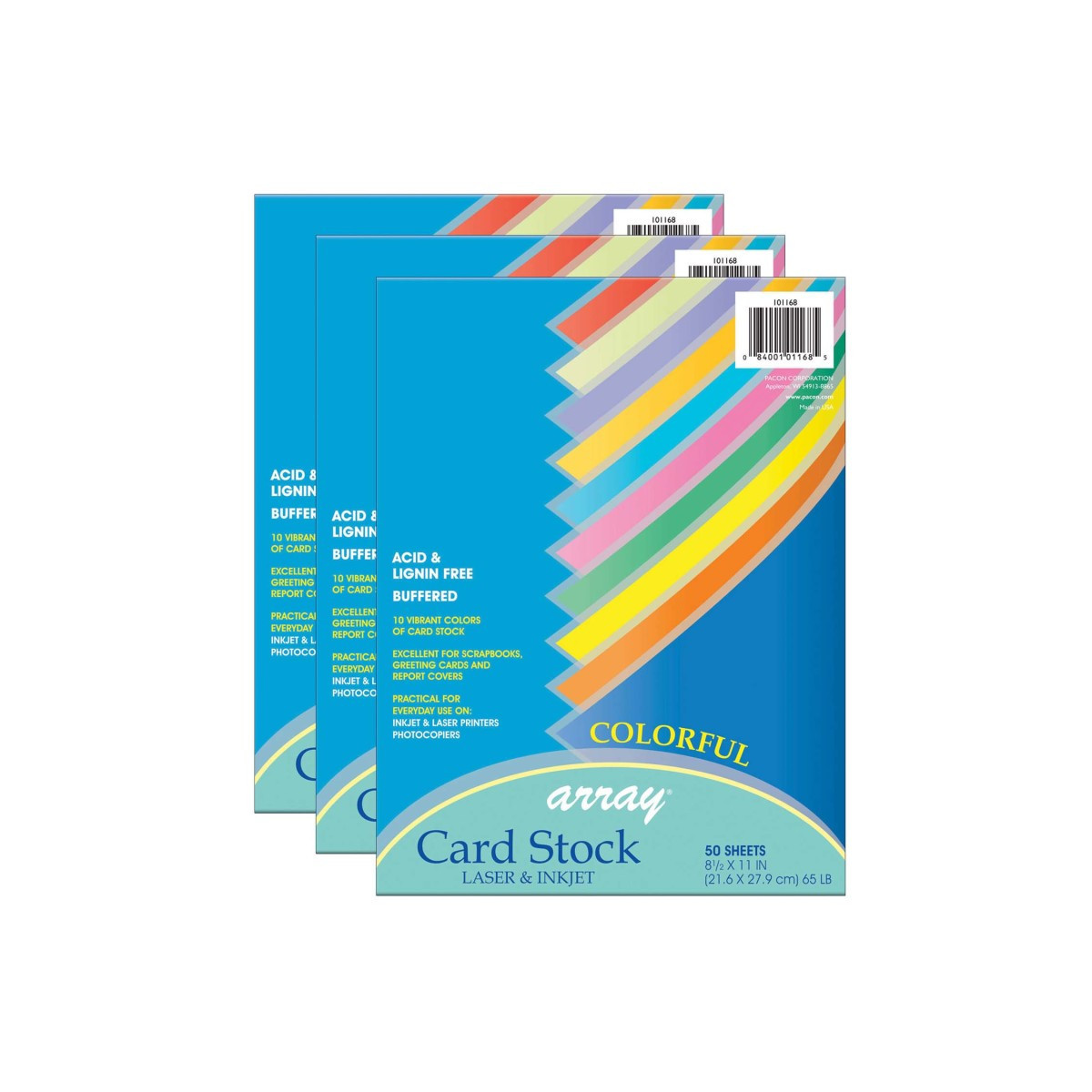 Heavyweight, 65 lb. acid-free paper is perfect for greeting cards, postcard, report covers, rubber stamping, memory books, flyers, announcements and more. Lignin free and buffered. Assortment contains ten solid colors: Violet, Pumpkin, Hyper® Yellow, Rojo Red, Hyper® Lime, Hyper® Pink, Cobalt Blue, Marine Blue, Emerald Green and Gold. Acid-free and recyclable. Each pack includes 50 sheets. Each sheet measures 8-1/2" x 11". Sold as 3 packs for a total of 150 sheets.