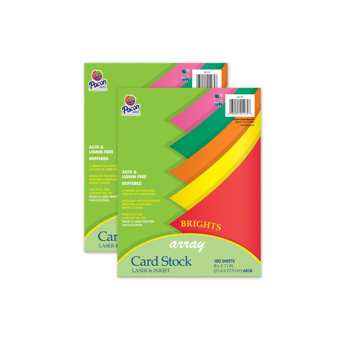 Heavyweight 65 lb. acid free cover. Perfect for greeting cards, postcards, report covers, rubber stamping, memory books, flyers, announcements and more. Lignin free, buffered. Laser and inkjet printer compatible. Assortment contains five solid colors: Emerald Green, Rojo Red, Lemon Yellow, Pumpkin and Hot Pink. Acid-free and recyclable. Each sheet measures 8.5" x 11". Each pack includes 100 sheets. Sold as 2 packs for a total of 200 sheets.