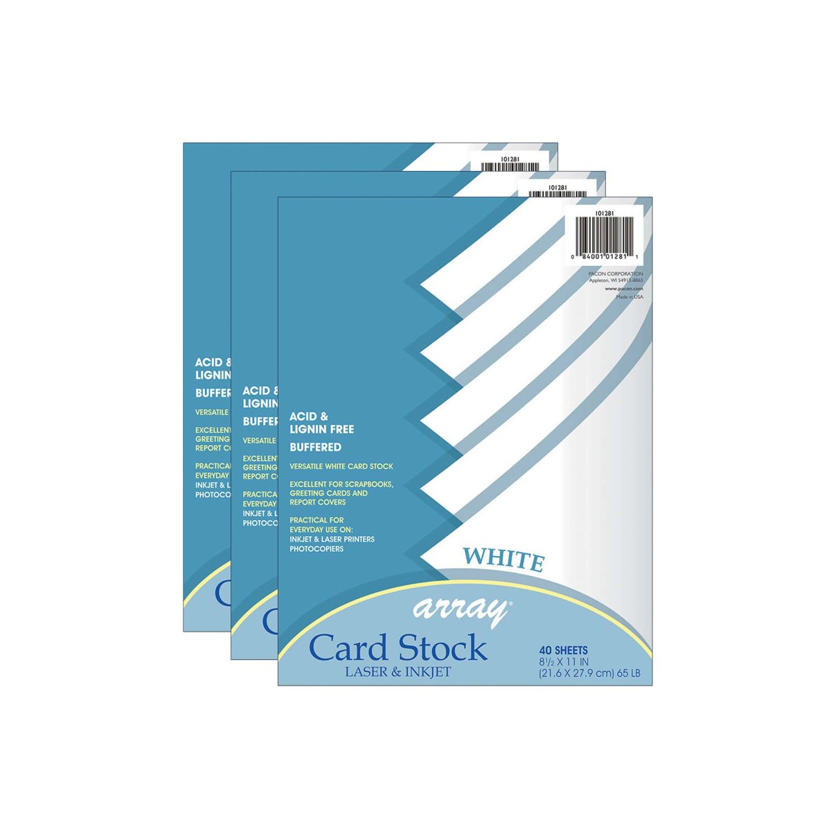 Heavyweight 65 lb. acid free cover. Perfect for greeting cards, postcards, report covers, rubber stamping, memory books, flyers, announcements and more. Lignin free, buffered. Laser and inkjet printer compatible. Acid-free and recyclable. Each pack includes 40 sheets. Each sheet measures 8-1/2" x 11". Sold as 3 packs for a total of 120 sheets.